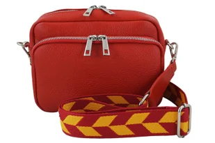 Torebka damska z ozdobnym paskiem czerwona została wykonana ze skóry naturalnej licowej. Klasyczny fason urozmaicony kolorowym paskiem, pojemną zasuwaną kieszenią z przodu oraz solidne wykonanie wyróżnia ten model listonoszki, która podkreśli stylizacje zarówno swobodne casual, jak i te na wyjątkowe okazje. Torebka damska z ozdobnym paskiem spełni oczekiwania naszych Klientek pod względem jakości produktu oraz uniwersalnego fasonu torebki, która sprawdzi się jako dodatek codziennej garderoby. Zapoznaj się z naszą najnowszą ofertą torebek skórzanych - listonoszek, klasycznych lub wygodnych plecaków. Oferujemy duży wybór produktów galanterii skórzanej Dla Niej i Dla Niego.