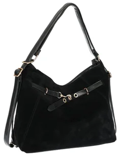 Torebka Damska zamsz Shopper Worek plecak 2w1 Pojemna A4 Torba 88026 Czarna