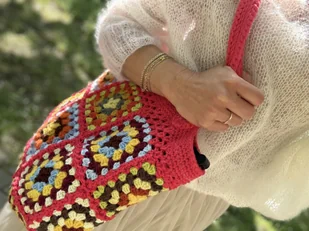 Ta piękna wyjątkowo barwna i niepowtarzalna torba. Idealna do wielu stylizacji. Wykonana została na szydełku na bazie kwadratów babuni. Jest bardzo pojemna i...
