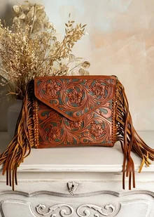 Niezwykła ręcznie wykonana torebka z naturalnej skóry z tradycyjnymi rzeźbieniami w skórze. Każdy egzemplarz powstał z pasji i precyzji, zapewniając niepowtarzalny charakter i wysoką trwałość. Grawerowane ...