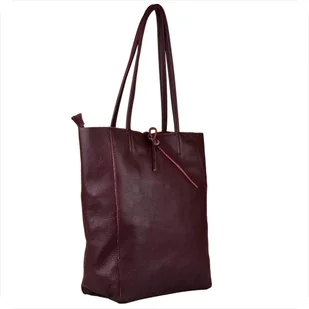 Torebka skórzana z zamkiem super lekka shopper bordowa XL