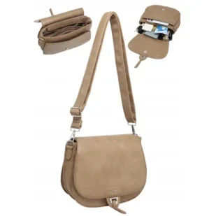 Torebka damska LUIGISANTO V2304 Beige/TaupeTorebka Damska Lugisanto - Klasyka i Nowoczesność w Doskonałej HarmoniiOdkryj torebkę damską Lugisanto V2304, doskonałe połączenie elegancji i funkcjonalności, wykonane z luksusowej skóry ekologicznej. Zaprojektowana z myślą o nowoczesnej kobiecie, która ceni sobie zarówno styl, jak i praktyczność, torebka ta jest idealnym wyborem na każdą okazję.Elegancki Design i BezpieczeństwoGłówna komora torebki zamykana jest na solidny suwak, a dodatkowo zabezpieczona elegancką klapą na magnes, co zapewnia bezpieczeństwo przechowywanych w niej rzeczy oraz dodaje nowoczesnego akcentu. Pod klapą znajdziesz dwie praktyczne otwarte kieszenie, które pomogą w szybkim dostępie do drobnych przedmiotów, takich jak klucze czy portfel.Wnętrze Pełne FunkcjonalnościWnętrze głównej komory skrywa przegrodę na suwak, która doskonale sprawdzi się w segregowaniu ważnych rzeczy. Dodatkowo, znajdują się tam dwie kieszonki: jedna zamykana na suwak, a druga wsuwana, idealna na telefon i inne drobiazgi, które chcesz mieć zawsze pod ręką.Praktyczne Detale i StylZ tyłu torebki umieszczona została kieszonka na suwak, oferująca dodatkową przestrzeń na przedmioty, do których potrzebujesz szybkiego dostępu. Torebka wyposażona jest w długi, regulowany pasek, który umożliwia komfortowe noszenie jej na ramieniu lub przez ciało, zapewniając wygodę użytkowania.Elegancja i Funkcjonalność w JednymSrebrne okucia dodają torebce elegancji, a usztywniane dno zapewnia stabilność i utrzymuje kształt torby. Choć torebka nie mieści formatu A4, jej przemyślany design oraz pojemne wnętrze sprawiają, że jest idealnym dodatkiem na co dzień.Torebka damska Lugisanto to doskonały wybór dla kobiet, które poszukują eleganckiego i funkcjonalnego akcesorium, które wzbogaci ich codzienny styl i sprawi, że każda stylizacja będzie wyglądać wyjątkowo.Specyfikacja torebki: