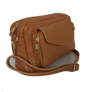 Urocza Włoska skórzana listonoszka Vera Pelle , pojemna złote okucia Camel MCZ45C