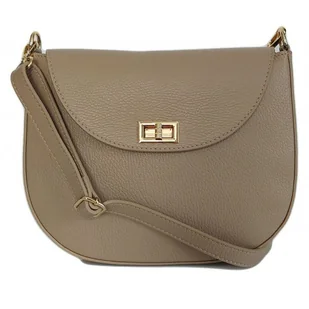 Włoska skórzana listonoszka podkówka Vera Pelle , pojemna złote okucia Beżowa VPP38T