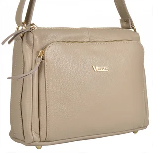 Włoska skórzana torebka beżowa VEZZE złote okucia Indeks: 1762 Proponujemy Paniom torebkę skórzaną VEZZE kolor beżowy ze złotymi okuciami w nowym fasonie pro...