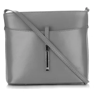 Włoska Torebka Skórzana Listonoszka wykonana z Solidnej Skóry Licowej Jasno Szara