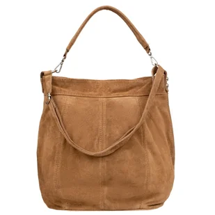 Damski worek wykonany z wysokogatunkowego zamszu naturalnego. Przystosowany do noszenia w ręku, ramieniu lub przedramieniu. wykonany starannie z dużą dbałością o detale pojemna komora główna zamykana na suwak mieści format A4 przegroda a komorze głównej dzieląca ją na dwie części zamykana na suwak kieszeń w przegrodzie zamykana na suwak kieszeń w komorze głównej otwarta kieszonka w komorze głównej miła dotyku wewnętrzna podszewka odpinany krótki pasek pasek na ramię z regulacją długości