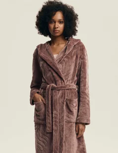 Długość przed kolano Luźny, komfortowy krój Model dostępny w wielu kolorach lub wzorach Model z kapturem Model z kieszeniami Pakowany w woreczek foliowy Tłoczony wzór Wiązanie w pasie Poliester: 100%
