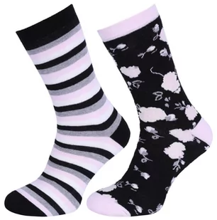 Komplet dwóch par wysokich skarpetek w czarno-różowo-szarych kolorach, w poziome paski, druga w kwiatowy wzór. Wykonane z miękkiego, elastycznego i miłego w ...