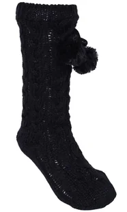 Para grubych skarpet w kolorze czarnym, z ozdobnymi pomponami. Wnętrze skarpet podszyte białym futerkiem. Wykonane z miękkiego, miłego w dotyku materiału. Na...