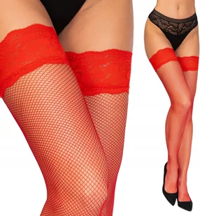 CZERWONE Pończochy KABARETKI SAMONOŚNE super koronka ELEGANCKIE