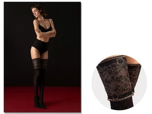 Pończochy samonośne z wysoką koronką Notte 40 DEN, Kolor czarny, Rozmiar 3, Fiore