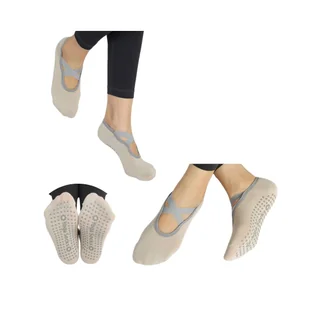 Skarpetki antypoślizgowe do jogi, fitnessu, pilatesu beżowe z gumkami