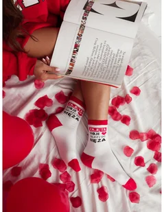 Skarpetki damskie z napisem ZAJĘTA - białe Te bawełniane skarpetki z napisem „Zajęta, moje serce należy do męża” to świetny wybór dla kobiet z poczuciem humoru i miłością do oryginalnych dodatków. Biało-czerwony design z wyrazistym napisem nadaje im charakteru i sprawia, że są idealnym pomysłem na prezent dla żony. Wykonane z miękkiej, oddychającej bawełny, zapewniają wygodę noszenia przez cały dzień. Doskonale pasują do domowych stylizacji, dodając odrobinę zabawy i uśmiechu w codziennym looku.
