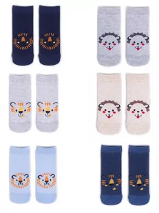 Bawełniane – delikatne i przyjazne dla skóry dziecka Ażurowe – w sam raz na cieplejsze dni Chłopięce motywy i kolory Stopki – krótkie skarpety przed kostkę 6-pak – ekonomiczne i wygodne rozwiązanie Dziecięce skarpety stopki sprzedawane w praktycznym sześciopaku. W typowo chłopięcych kolorach. Uroku dodają im wesołe buźki zwierzątek. Skarpety są miłe w dotyku, posiadają nieupijający ściągacz. Dzięki bawełnianej, ażurowej strukturze są niezwykle przewiewne i miłe w dotyku.