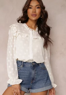 Jasnobeżowa Koszula z Ozdobnymi Mankietami i Dekoltem Kerra