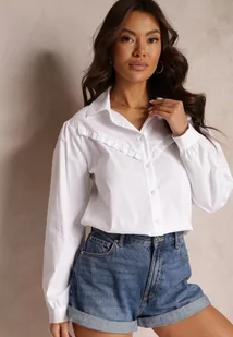 Biała Bawełniana Koszula z Kołnierzem i Falbanką Chrissa