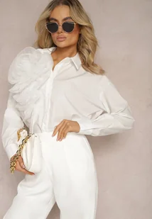 Biała Klasyczna Koszula z Oryginalną Ozdobą z Transparentnej Tkaniny Feoria