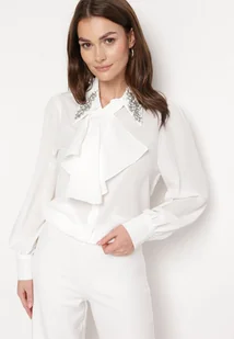 Biała Koszula z Falbanką i Ozdobnymi Broszkami z Cyrkoniami Ophiriel