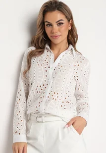 Biała Koszula z Haftowanej Tkaniny Zapinana na Guziki Ziretta