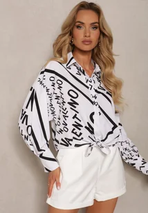 Biała Koszula z Wiązaniem Ozdobiona Napisami Vikmira