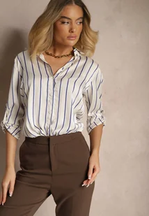 Biało-Niebieska Koszula w Delikatne Paski z Podpinanymi Rękawami Berraza