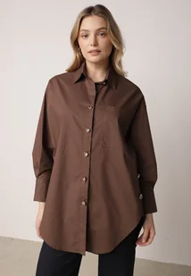 Brązowa Bawełniana Koszula Oversize z Biżuteryjnymi Guzikami Adrearina