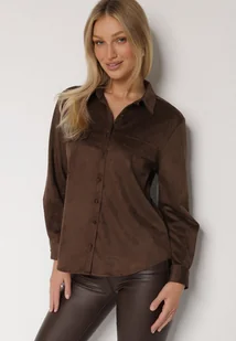 Brązowa Koszula z Imitacji Zamszu z Klapami Retilda