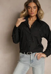 Czarna Bawełniana Koszula Z Ozdobnymi Naszywkami Katirina