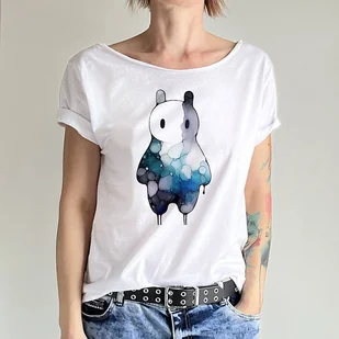 Mamy fajne kolorowe wzory z kolorowymi duszkowatymi ludzkami. Oto jeden z nich :) Lekka, luźna, kobieca koszulka. Tshirt z opadającym dekoltem z fajnym wzorem. Styl oversize. Rozmiary S-XL. 100% b ...
