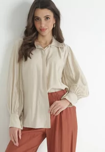 Jasnobeżowa Koszula z Kołnierzykiem i Plisowanymi Rękawami Devla
