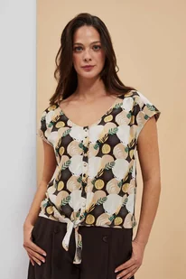 100%WISKOZA Koszula damska, na całości rośliny wzór w naturalnych kolorach. Dekolt V-neck. Koszula z krótkim rękawem. Przód zapinany z drobne guziki, o tym s...