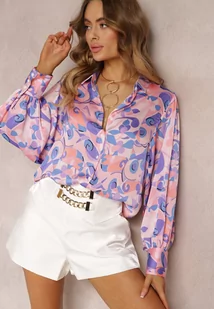 Różowo-Fioletowa Koszula Ozdobiona Abstrakcyjnym Printem Sharleen