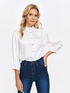 Koszula damska Top Secret z efektownym kołnierzykiem na marszczonej stójce. Subtelnie elegancka koszula damska o swobodnym fasonie z delikatnie bufiastym rękawem o długości ? zakończonym luźną gumką. Jest ona zapinana z przodu na guziki i ma efektowny kołnierzyk na marszczonej stójce wraz z dodatkowymi marszczeniami wokół niego. Doskonale wygląda ona zarówno w połączeniu z eleganckimi długimi spodniami, jak i również ciekawą spódnicą, będąc dobrym uzupełnieniem dla praktycznie każdej kobiecej stylizacji oficjalnej oraz wyjściowej. Koszula damska dostępna w kolorze białym TSKW24BLK353700X00.