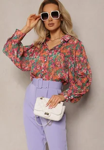 Różowo-Pomarańczowa Koszula w Kwiaty z Bufiastymi Rękawami Morwenia
