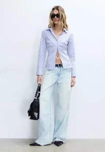 Stradivarius Podstawowa dopasowana koszula w paski Niebieski XL