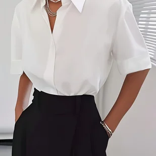 TEMU Elegancka odzież damska na imprezę, stylowe koszule damskie na co dzień, białe bluzki z krótkim rękawem idealne do dojazdów do pracy i na co