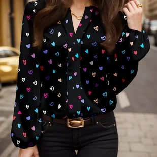 TEMU Modna Elegancka Koszula z Długim Rękawem w i Serduszka