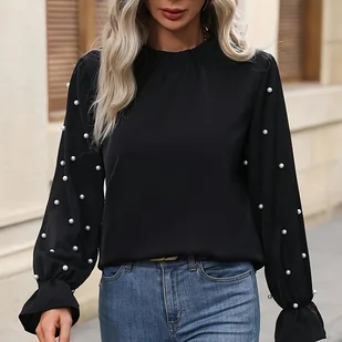 TEMU Elegancka Bluzka z Długim Rękawem dla Kobiet, Modny Top z Cekinami, Idealny na Imprezy i Spotkania