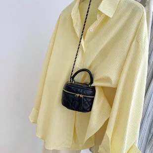 TEMU Damska koszula z długim rękawem, idealna do pracy, z żółtymi paskami i stójką