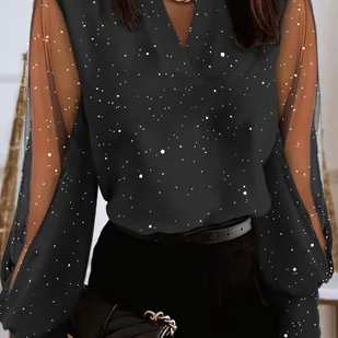 TEMU Elegancka Bluzka z Długim Rękawem dla Kobiet, Modny Top z Cekinami, Idealny na Imprezy i Spotkania