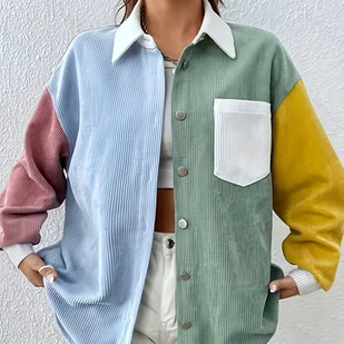 TEMU Kurtka koszulowa z sztruksu w stylu europejsko-amerykańskim, obowiązkowa w każdej europejskiej i amerykańskiej garderobie, natychmiast