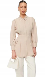 TRENDYOL BEŻOWA KOSZULA Z PEREŁKAMI NA KOŁNIERZYKU I DŁUGIM RĘKAWEM 40 5AA