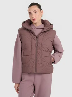 Bezrękawnik damski pikowany 4F – ciepło i wygoda na co dzień Hydrofobowa powłoka zewnętrzna chroni materiał przed wchłanianiem wilgoci i lekkim deszczem Lekka ocieplina poliestrowa zapewnia ciepło bez uczucia ciężkości, łatwa w pielęgnacji Pikowane panele dodają charakteru i równomiernie rozkładają ocieplinę Odpinany kaptur z regulacją możliwość dopasowania i noszenia w różnych warunkach Stójka pod szyją dodatkowo chroni przed chłodem i wiatrem Zamek jednokierunkowy z przodu łatwe i szybkie zakładanie oraz zdejmowanie kamizelki 2 kieszenie boczne bez zapięcia szybki dostęp do drobiazgów i wygodne miejsce na dłonie Dół regulowany ściągaczem tunelowy ściągacz ze stoperami pozwala dopasować obwód Regularny krój dopasowuje się do sylwetki bez uczucia ucisku Bezrękawnik damski pikowany 4F – lekkość, która grzeje Codzienny komfort w chłodniejsze dni. Hydrofobowa powłoka zewnętrzna ogranicza wchłanianie wilgoci i chroni przed lekkim deszczem. Poliestrowa ocieplina daje przyjemne ciepło bez zbędnego obciążenia i sprawia, że kamizelka jest łatwa w pielęgnacji. Dzięki pikowanym panelom wypełnienie rozkłada się równomiernie, co zapewnia lepszą izolację. Odpinany kaptur z regulacją oraz wysoka stójka zwiększają ochronę przed chłodem i wiatrem.