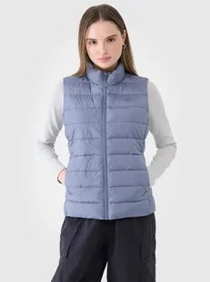 Taki rodzaj pikowania zapewnia dobrą izolację termiczną i odpowiednią kompresyjność. Posiada dopasowany krój slim, który przylega do ciała oraz standardową długość sięgającą do linii bioder. Sprawdź: Jak wybrać damski bezrękawnik? Bezrękawnik damski z wypełnieniem w postaci puchu syntetycznego Bezrękawnik kamizelka damska z puchem syntetycznym, który jest trwalszy i łatwiejszy w utrzymaniu niż puch naturalny. Nawet przy kontakcie z wilgocią, zachowuje swoje właściwości izolacyjne przez dłuższy czas oraz o wiele szybciej schnie. Dodatkowo nie wymaga skomplikowanego procesu prania i suszenia.