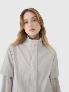 Obwód dołu można wyregulować przy użyciu tunelowego ściągacza ze stoperami. Kurtka przejściowa bez kaptura dla kobiety - CECHY: krój: oversize, który luźno układa się na sylwetce i zapewnia swobodę standardowy fason sięgający do bioder hydrofobowa powłoka materiału zewnętrznego ogranicza wchłanianie wilgoci lekka konstrukcja zapewnia komfort bez dodatkowego obciążenia wysoki kołnierz mankiety z elastyczną gumką siatka pod pachami usprawnia cyrkulację powietrza 2 otwarte kieszenie boczne jednokierunkowy zamek główny z wewnętrzną i zewnętrzną plisą przeciwwiatrową regulacja obwodu dołu za pomocą tunelowego ściągacza ze stoperami wykonana z materiału syntetycznego, który jest trwały i łatwy w pielęgnacji