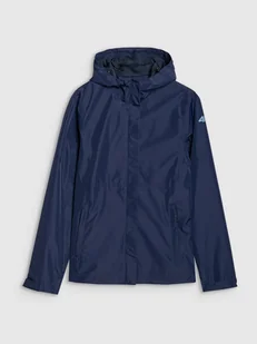 Kurtka przejściowa z kapturem dla kobiety - CECHY: krój: regular, który wygodnie dopasowuje się do sylwetki standardowy fason sięgający do bioder podszewka z oddychającej siateczki lekka konstrukcja zapewnia komfort bez dodatkowego obciążenia zintegrowany kaptur z regulacją objętości stójka mankiety z regulacją na rzep wentylacja pod pachami, regulowana na jednokierunkowy zamek kryty pod plisą 2 kieszenie boczne z zapięciem na zamek zamek główny zabezpieczony zewnętrzną plisą regulacja obwodu dołu za pomocą tunelowego ściągacza ze stoperami wykonana z materiału syntetycznego, który jest trwały i łatwy w pielęgnacji