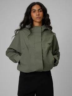 Lekka kurtka na zmienną pogodę Hydrofobowa powłoka impregnacyjna ogranicza wchłanianie wilgoci przez materiał Zintegrowany kaptur z boczną regulacją objętości pozwala dopasować osłonę do warunków Laserowo cięte perforacje pod pachami wspierają wentylację podczas ruchu 2 kieszenie boczne na zamek bezpieczne miejsce na drobiazgi Mankiety zapinane na napy umożliwiają dopasowanie szerokości rękawów Dół regulowany ściągaczem ze stoperami pozwala dopasować kurtkę do sylwetki Gładka podszewka zwiększa komfort noszenia Luźniejszy krój zapewnia swobodę ruchów i wygodę Damska kurtka przejściowa 4F – lekka ochrona na zmienną pogodę Damska kurtka przejściowa 4F sprawdzi się w dni, gdy pogoda szybko się zmienia. Luźniejszy krój daje swobodę ruchów podczas chodzenia czy codziennych aktywności. Materiał pokryto hydrofobową powłoką impregnacyjną, która ogranicza wchłanianie wilgoci przy lekkim deszczu. W modelu zastosowano laserowo cięte perforacje pod pachami, które wspierają wentylację podczas ruchu. Zintegrowany kaptur z boczną regulacją pozwala dopasować osłonę do warunków, a gładka podszewka sprawia, że kurtkę łatwo założyć na bluzę lub koszulkę.