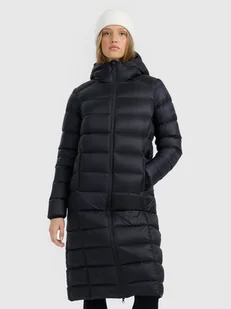 Płaszcz puchowy damski – ciepło, które dotrzymuje kroku Naturalne puchowe wypełnienie zapewnia najwyższy poziom ciepła w mroźne dni przy niskiej wilgotności Hydrofobowa warstwa ochronna zabezpiecza materiał przed wchłanianiem wilgoci i lekkim deszczem Wytrzymały materiał rip-stop odporny na rozdarcia, idealny na zimowe wyzwania Zintegrowany kaptur z regulacją dopasowuje się do głowy, chroniąc przed wiatrem 2 boczne kieszenie na zamek bezpieczne miejsce na telefon, klucze czy rękawiczki Elastyczne wykończenie mankietów zapewnia lepsze dopasowanie i ochronę przed zimnem Dół z elastyczną lamówką zatrzymuje ciepło i chroni przed przewiewaniem Możliwość spakowania w kieszeń łatwa do schowania i zabrania w podróż Pikowana podszewka wzmacnia efekt termoizolacji i poprawia komfort noszenia Wygodny krój regular nie krępuje ruchów i dobrze leży na różnych sylwetkach Puchowy płaszcz damski 4F – naturalne wypełnienie i komfort w zimne dni Naturalne puchowe wypełnienie zapewnia maksymalne ciepło w mroźne dni. Hydrofobowa warstwa ochronna skutecznie chroni przed wilgocią i lekkim deszczem, a wytrzymały materiał rip-stop zapobiega rozdarciom – idealny na zimowe wyzwania. Zintegrowany kaptur z regulacją dobrze dopasowuje się do głowy, osłaniając przed wiatrem. Dwie kieszenie na zamek bezpiecznie przechowają najpotrzebniejsze rzeczy, a elastyczne wykończenia mankietów i dołu pomagają utrzymać ciepło wewnątrz. Możliwość spakowania w kieszeń to wygodne rozwiązanie na podróż.