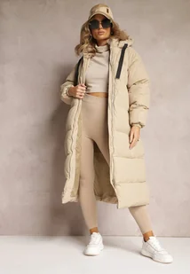 Beżowa Długa Kurtka Pikowana z Kapturem Serea